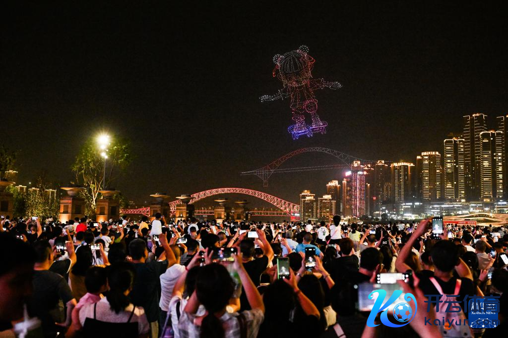 5月2日晚,旅客在重庆朝天门广场不雅看无东说念主机灯光秀。