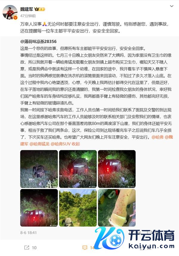 快科技 8 月 14 日音书,近日,有网友发微博称,我方和女友开哈弗猛龙滚落 80 米峭壁,车辆险些全损欧洲杯体育,二东说念主仅手臂眇小擦伤,直呼"下次买车还买哈弗"。