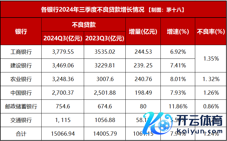 三季度最新财报里,六大行的不良贷款一起都是增多的,而况涨幅都极端彰着。