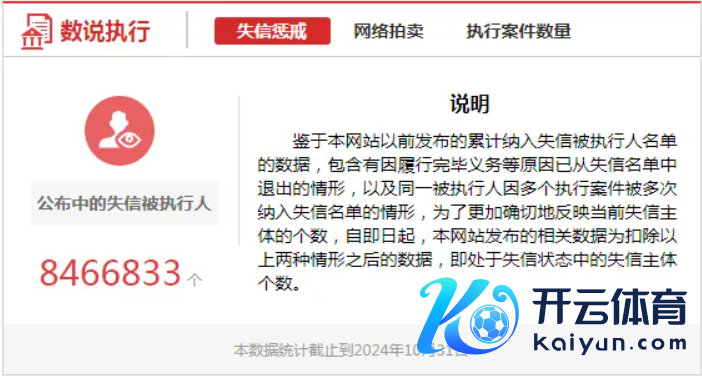 适度2024年10月31日,世界失信被实施东谈主数目照旧高潮到846.68万东谈主。
