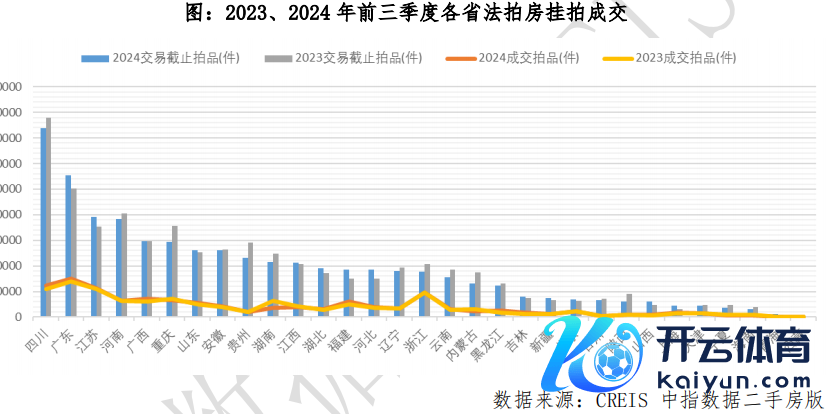 2024 年前三季度全王法拍市集挂拍种种法拍房源数目累计 57.5 万套,累计成交拍品数目约 12.5 万套,总成交金额 2363.7 亿元;