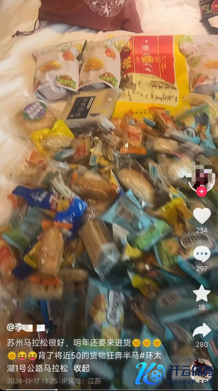 视频显现,她将多量饼干、蛋糕、芒果干、扒鸡等零食放在床上,险些铺满了通盘这个词床单,目测有上百样之多,“好艰巨啊,背了有40多斤吧!”不外,其挑剔区遭多量网友留言嘲讽,“若是我能这样没皮没脸辞世就好了”“苏州马拉松本年竟然遇劫了”“你拿这样多,背面的东谈主怎么办?”