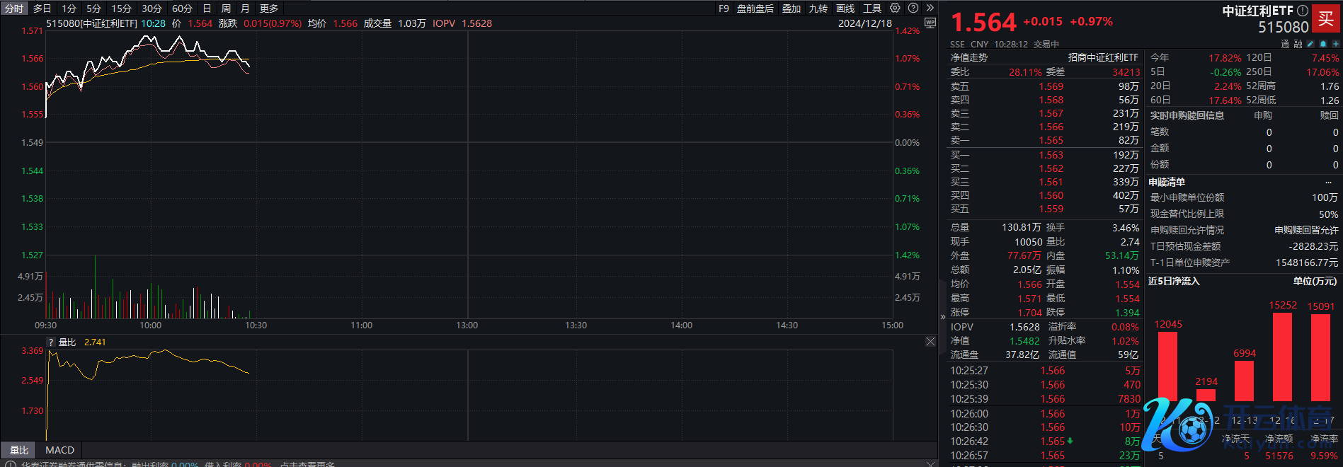 资金流向方面,Wind数据解析,中证红利ETF(515080)昨日获资金净流入超1.5亿元。拉永劫辰线来看,该ETF已贯串5日获资金净流入,蓄意超5亿元。