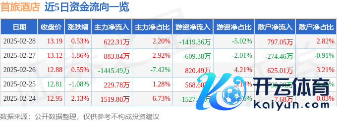 本站音尘,终了2025年2月28日收盘,首旅旅店(600258)报收于13.19元,高潮0.53%,换手率1.92%,成交量21.41万手,成交额2.83亿元。