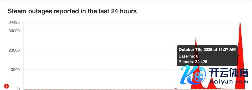 事情的严重性,从Downdetector的数据就能看出来,向上三万四千份雪花般的故障敷陈,在短短几小时内就把奇迹器气象图染成了一派血红。