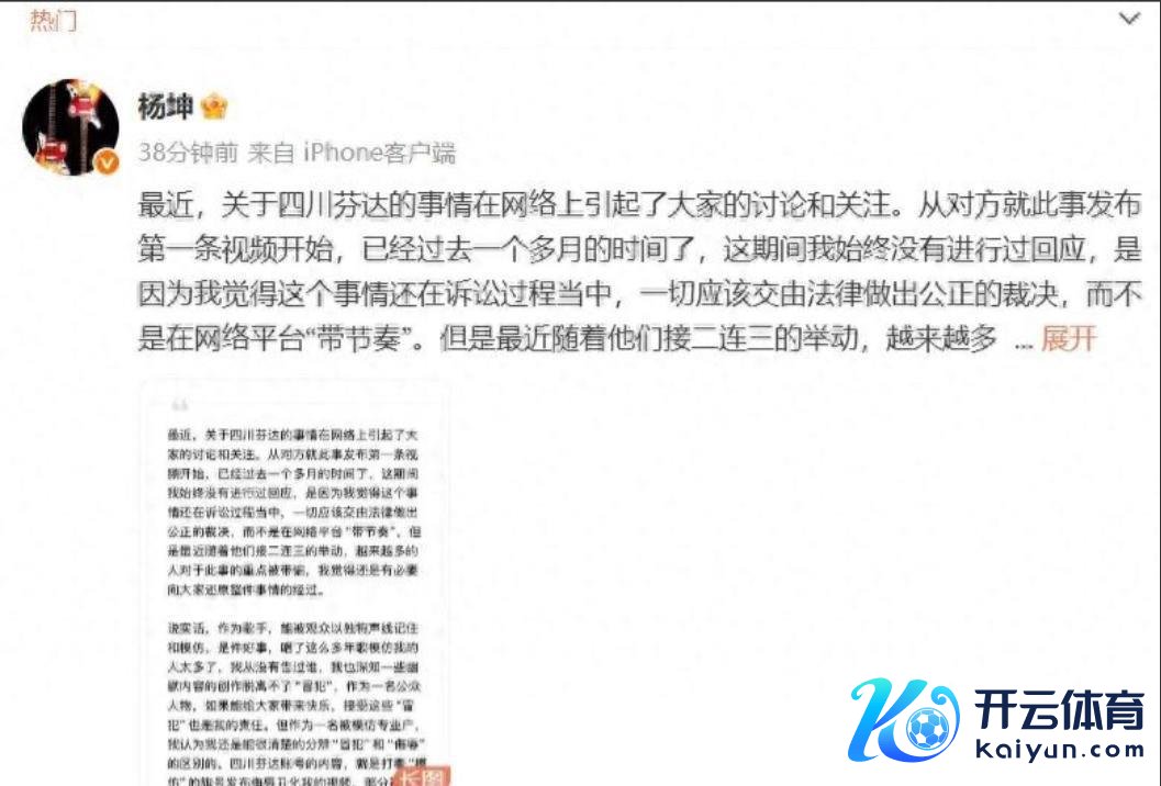 这种“绿茶式”的回答让不少杨坤的粉丝感到发火,但也为“四川芬达”带来了更多的关注度。直到上周,杨坤在微博上发表了一篇长文,明确示意他仍是雅致告状“四川芬达”,况兼强调“皆备不会撤诉”。
