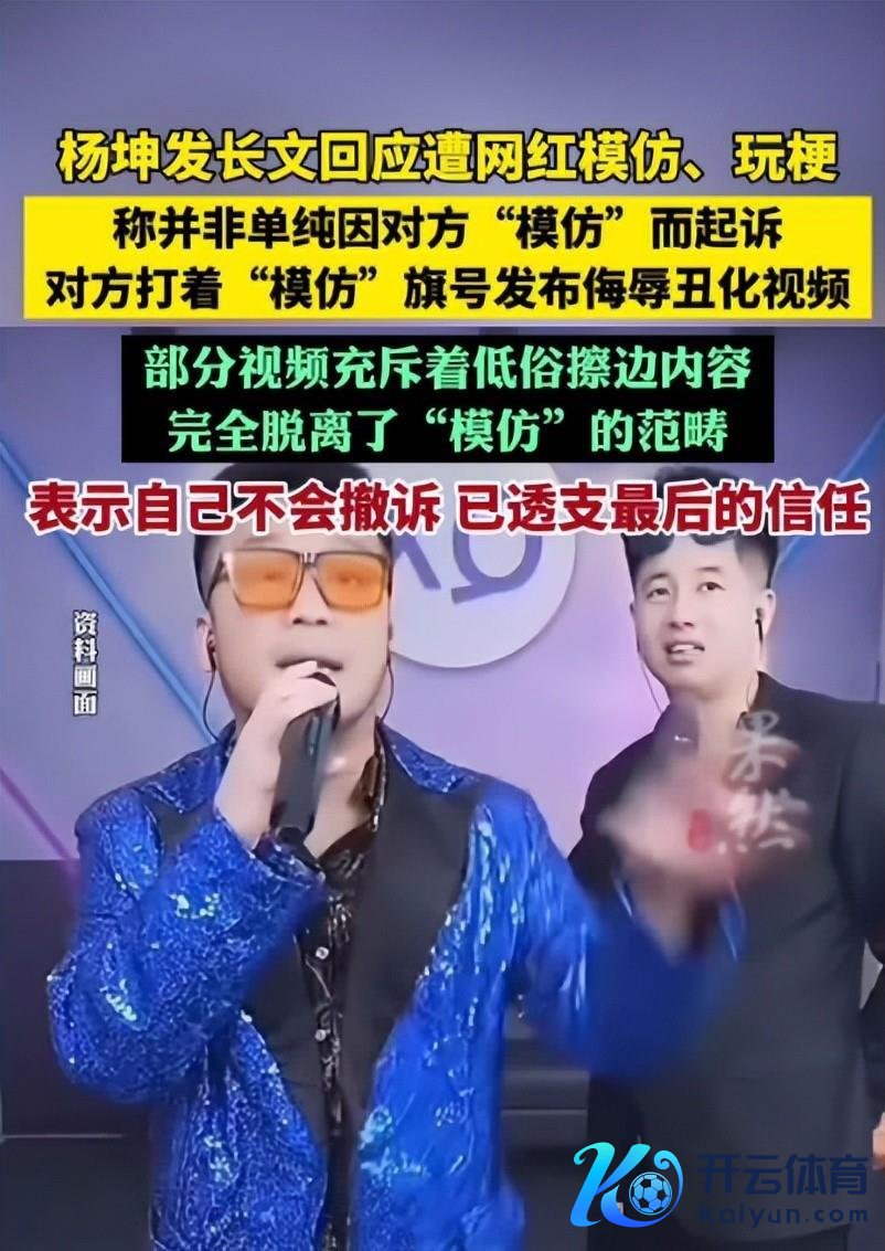 杨坤在著述里抒发了一个深切的视力,他说:“若是世界只铭记那些特意丑化的效法版块,我经心塑造的艺术形象就被不值钱地掌握了。”