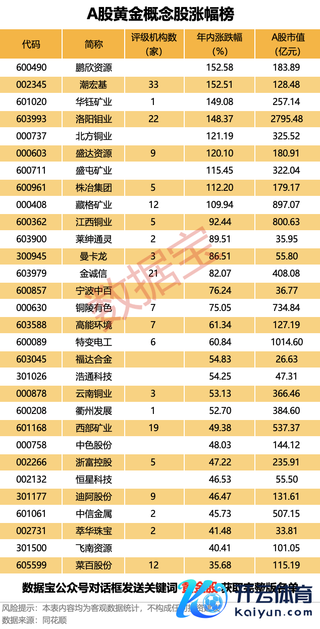 A股黄金倡导股涨幅榜出炉欧洲杯体育A股黄金倡导股涨幅榜出炉