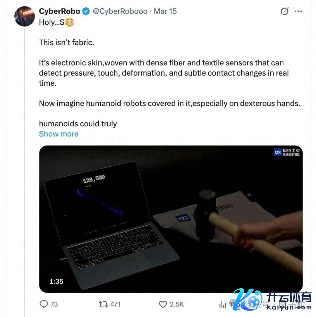 这么的传感纤维不错作念出上衣、手套或足套,要是穿在机器东说念主身上,那玩法可就多了。