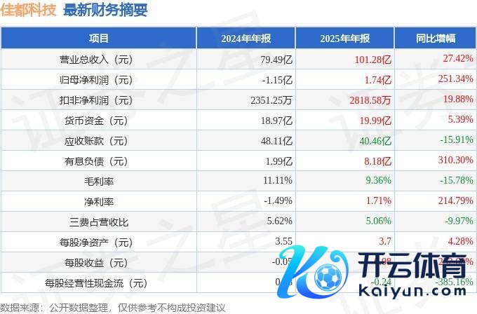 据证券之星公开数据整理,近期佳齐科技(600728)发布2025年年报。领域本敷陈期末,公司营业总收入101.28亿元,同比高涨27.42%,归母净利润1.74亿元,同比高涨251.34%。按单季度数据看,第四季度营业总收入30.32亿元,同比下落2.76%,第四季度归母净利润-1504.19万元,同比下落119.24%。本敷陈期佳齐科技公司应收账款体量较大开云体育(中国)官方网站,当期应收账款占最新年报归母净利润比达2326.96%。