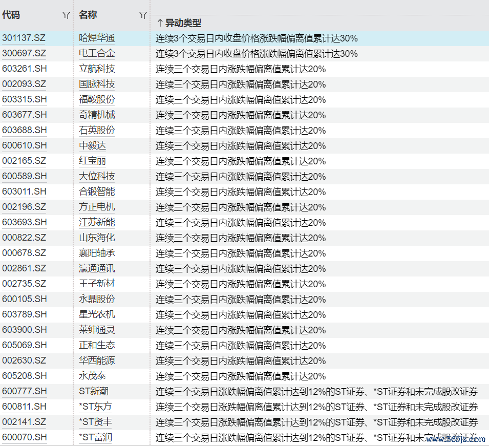贯穿异动个股一览