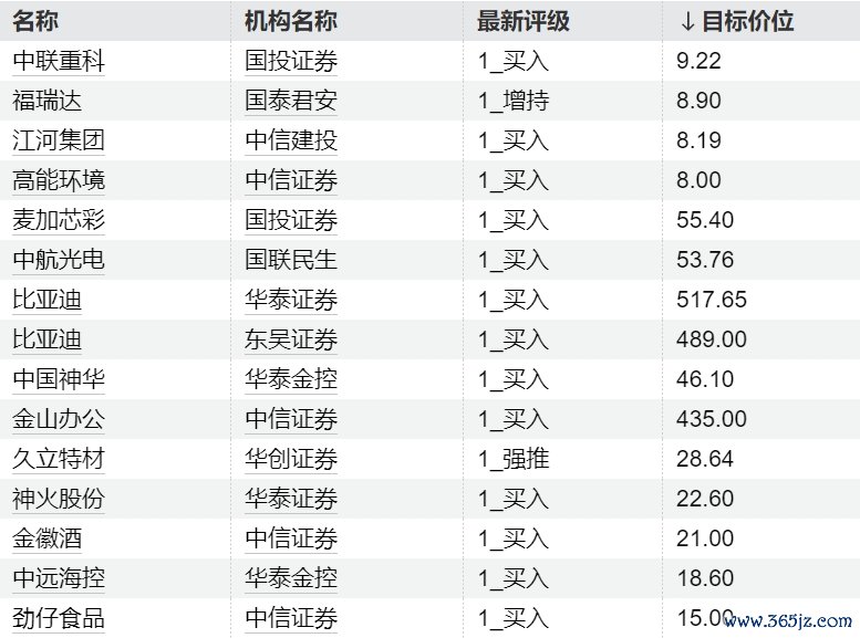 机构本日看好这些个股